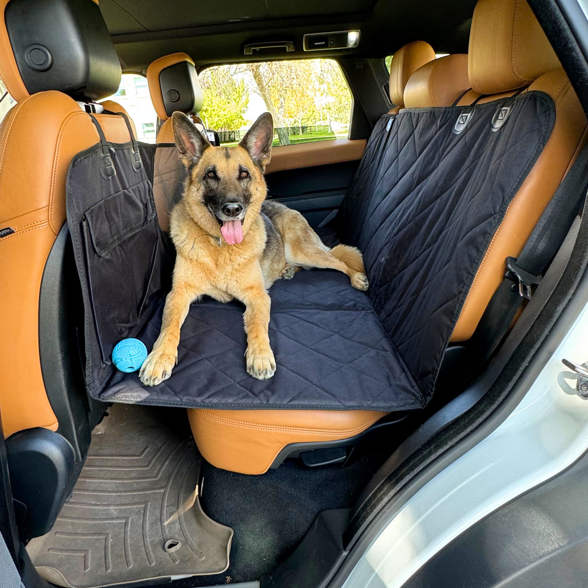 The backseat extender is great! We have two Brtittanys and the extender opens up a ton of space for them in the back seat. The screen area so the dogs can readily see us is perfect. One of our Britt’s is very anxious (whines) in the car and that has gone away when he is in the car with the extender. Installation a no brainer! Get one!